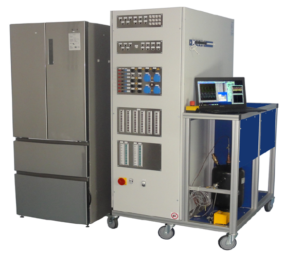 分析設(shè)備帶有64個(gè)熱電偶測(cè)溫點(diǎn)、20個(gè)熱流傳感器、6個(gè)熱負(fù)荷、6個(gè)相對(duì)濕度傳感器、6個(gè)加熱元件、5個(gè)步進(jìn)電機(jī)、5個(gè)壓力傳感器、4個(gè)選擇閥、3個(gè)震動(dòng)傳感器,可以控制冰箱6個(gè)溫區(qū)、4個(gè)制冷系統(tǒng)。