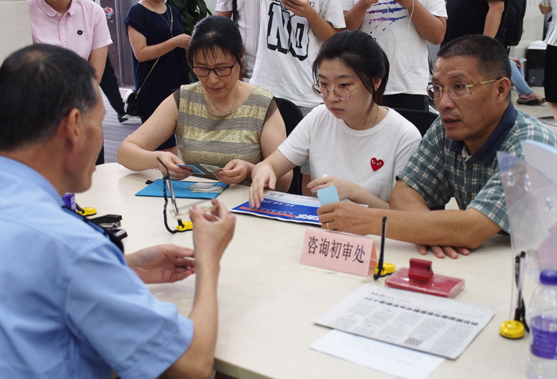 在上海市閔行區證照辦理中心,民警在解答有關為香港居民辦理居住證的手續問題(2018年9月1日攝)。新華社記者 任瓏 攝