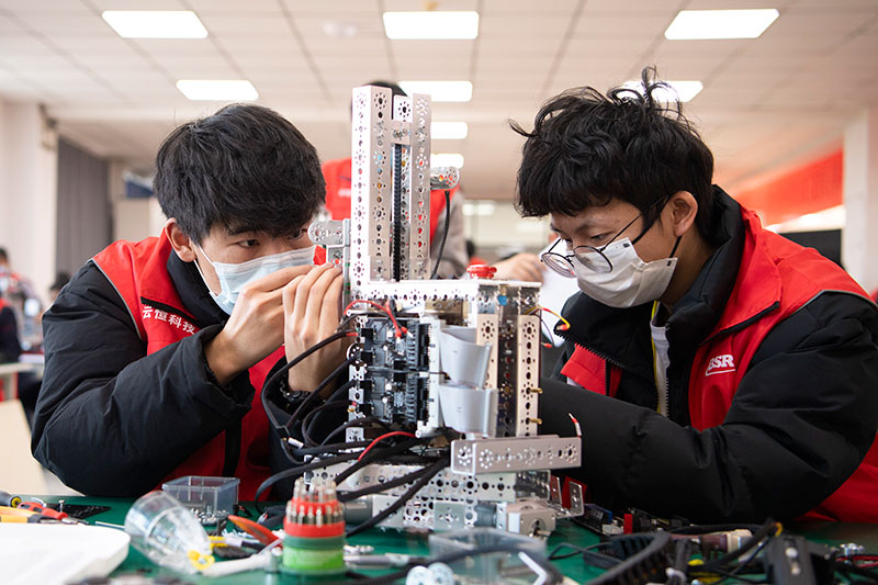 2021年12月25日,第三屆山西省職業技能大賽參賽選手在位于山西機械高級技工學校的移動機器人項目賽場進行比賽。新華社記者 楊晨光 攝